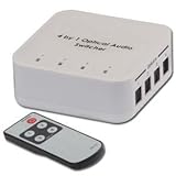 Ex-Pro Professional package :- SPDIF Digital - 4 Way Remote TosLink Digital Optical Audio Switch. [Switch between devices, PS3, Virgin, Sky, Xbox 360, DVD, Blueray player etc..]. This very compact switch allows you to connect two digital optical Toslink sources to a single optical TosLink (SPDIF) input on your HD TV, AV amplifier, Hi-Fi or home cinema system. A simple switch control allows you to select the source device. Ideal for use with PS3, Xbox 360, Gaming, PC, Blueray, CD/DVD Player, Set top box, PC etc. and saves on wear and tear of constant plugging and unplugging of cables. 2 Way TosLink Digital Optical Audio Switcher. Supports cables distances of up to 5m in (for each input) and 5m out. Input ports: 4 x TosLink (Optical Fibre). Output port: 1 x TosLink (Optical Fibre). Supports uncompressed 2-channel LPCM (Linear Pulse Code Modulation) digital audio signal output. Supports compressed 2-channel and multi-channel Dolby and DTS audio signals. Includes 5V DC multi country power supply. Dimensions: 95 x 85 x 35mm (WxDxH). Ex-Pro 2 year warranty on switch.